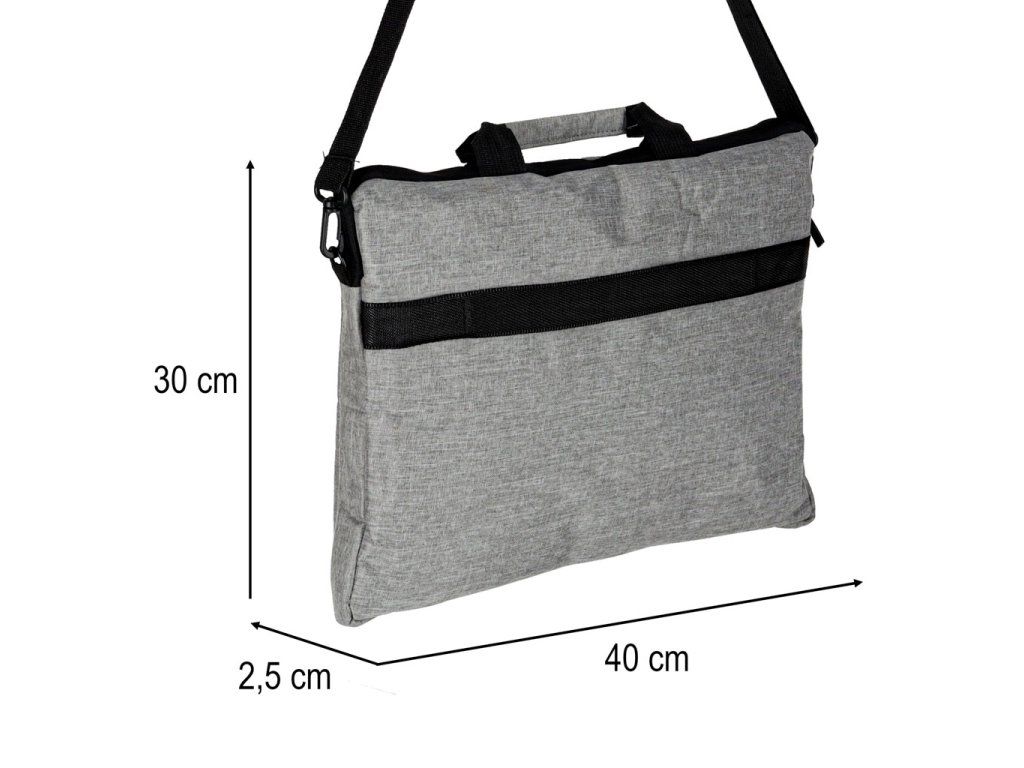 A táska méretei 30 × 40 × 2,5 cm, ami azt jelenti, hogy elegendő helyet biztosít a legtöbb, legfeljebb 15,6 hüvelykes átlójú laptop számára. Ennek ellenére kompakt és könnyen hordozható. Ez a formátum kisebb táskákhoz vagy hátizsákokhoz is ideális.