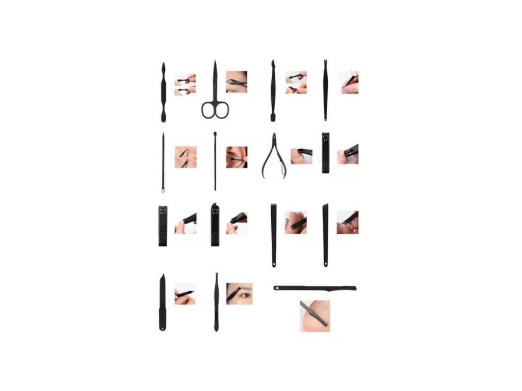 Ez a készlet nemcsak az alapvető manikűrökhöz és pedikűrökhöz készült, hanem eszközöket biztosít a körömágy ápolásához, a bőr tisztításához és a szemöldök ápolásához is. A professzionális ollók, csipeszek és kaparók kifogástalan ápolást biztosítanak. A speciális mitesszereltávolító eszköznek és a fültisztító kanálnak köszönhetően az apró esztétikai részletekkel is foglalkozhat.