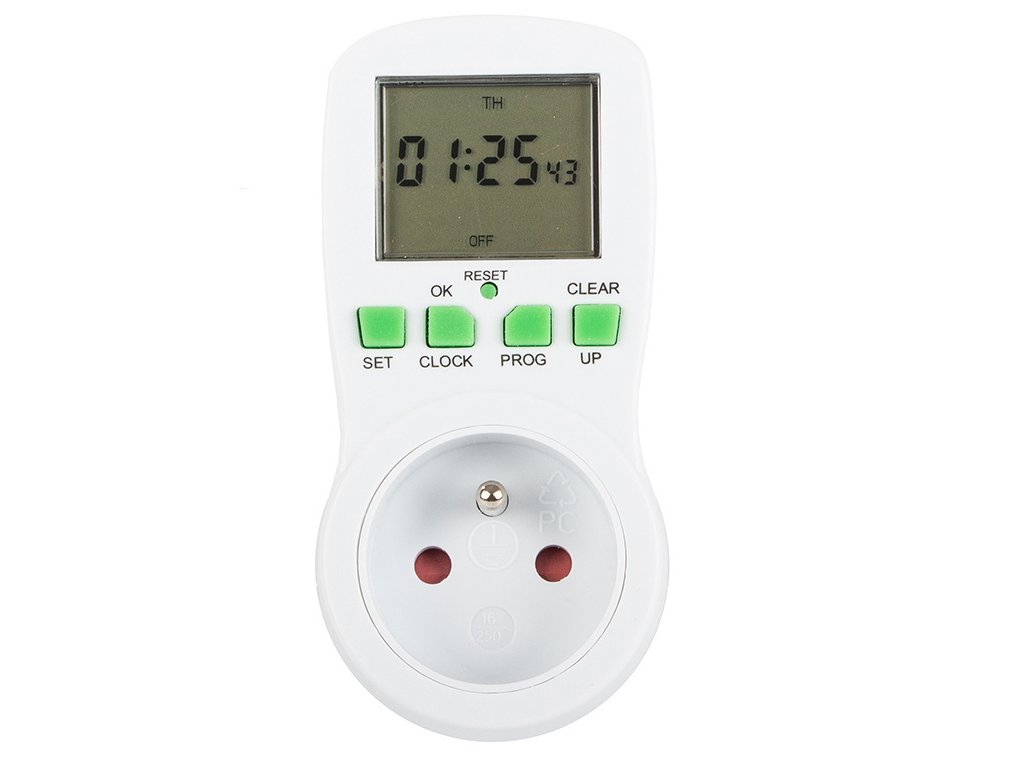 A speciális időzítő aljzat nagyon könnyen használható. Rendelkezik 4 praktikus gombbal és egy RESET gombbal. Ezzel az egyszerű vezérlővel gyorsan beprogramozhatja bármely elektromos berendezés működését egy adott napra, órára vagy akár percre.