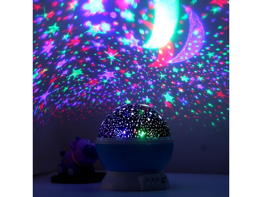 A gyerekszobában biztosan jól jön, ha a gyerekek nem akarnak elaludni a sötétben. A projektor beállítható kivetítőként vagy lámpaként is. A projektor felállítása nagyon egyszerű, vegye le a felső darabot, és élvezze a fényjátékot, amelyet a projektor a mennyezeten hoz létre.