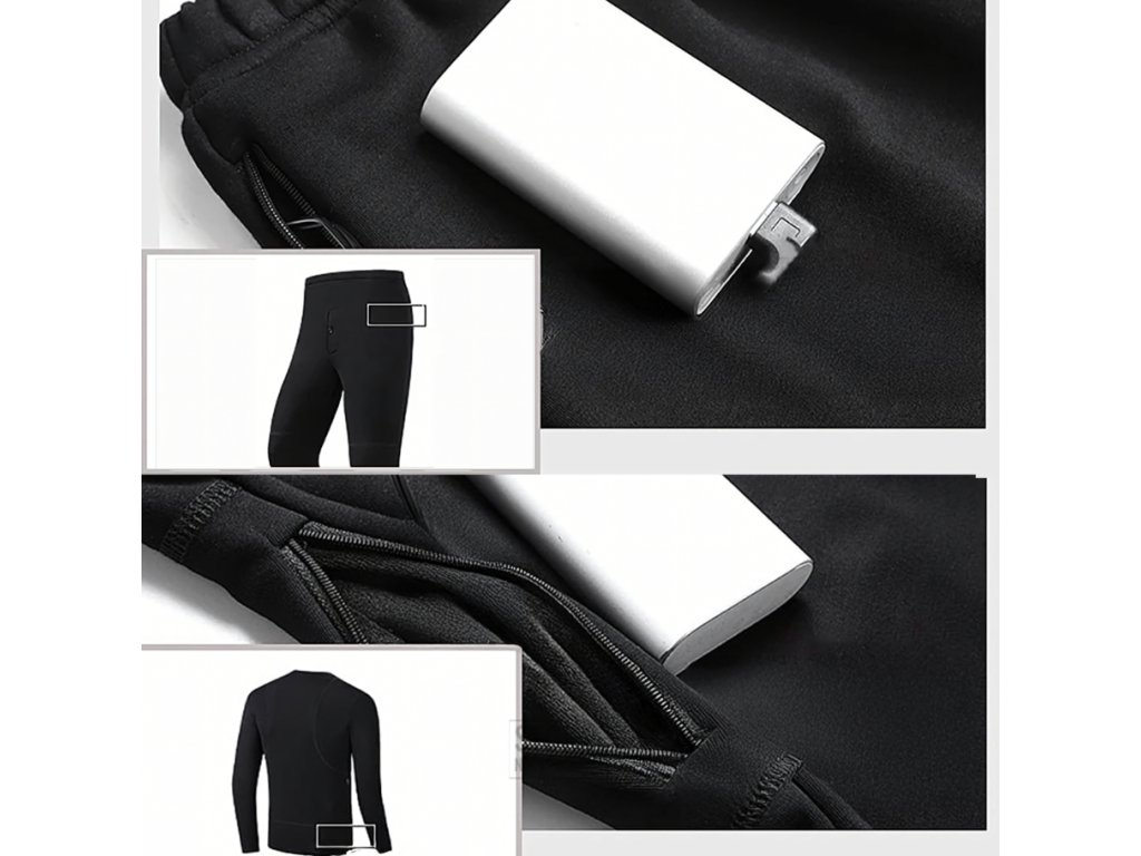 Ez a fűtött termikus fehérnemű négy stratégiailag elhelyezett fűtési zónával rendelkezik - a háton, a csípőn és a térden. Ezek a testrészek a legérzékenyebbek a hidegre, és egyenletes fűtésük növelheti az általános kényelmet téli tevékenységek során.