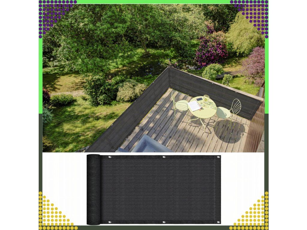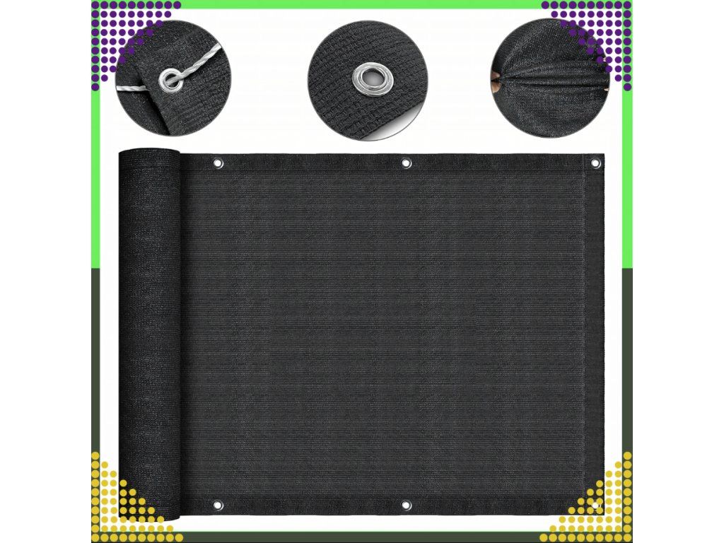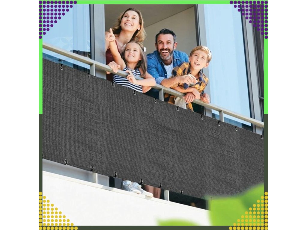 A kiváló minőségű erkélyfüggöny tartós HDPE polietilénből készült, amely hosszú élettartamáról és nagy szilárdságáról ismert. Az anyag mindennapi kültéri használatra alkalmas.