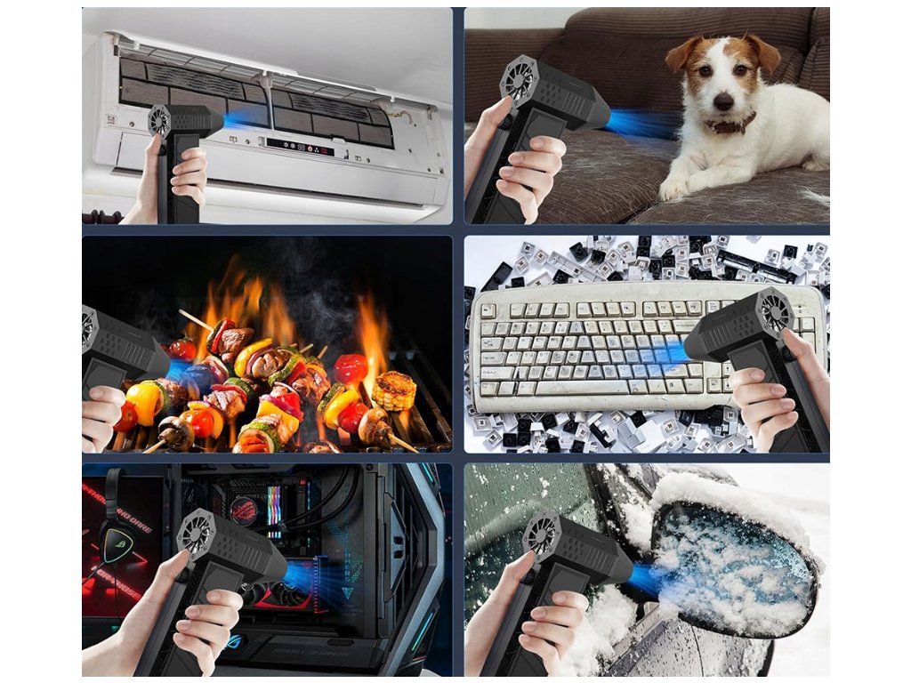 Felejtse el a nehézkes kábeleket – a nagy teljesítményű elektromos fúvót két beépített 4000 mAh-s akkumulátor táplálja, amelyek egyetlen töltéssel elegendő hosszú üzemidőt biztosítanak. Az USB töltésnek köszönhetően gyakorlatilag bárhol töltheti – otthon, az autóban vagy a munkahelyén.
