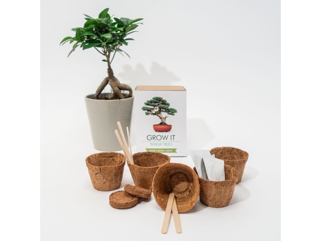 Minden, ami a bonsai termesztéséhez szükséges, megtalálható egy dobozban, semmit sem hagytunk ki. Ez a készlet ideális kezdőknek, haladó termesztőknek és gyerekeknek. Mindössze annyit kell tennie, hogy elülteti a magokat a mellékelt cserepekbe, öntözi és gondosan ápolja őket. A Grow it készlet 5 kókuszrostos cserepet, tápoldatokat, magokat, növénytámaszokat és termesztési útmutatót tartalmaz.