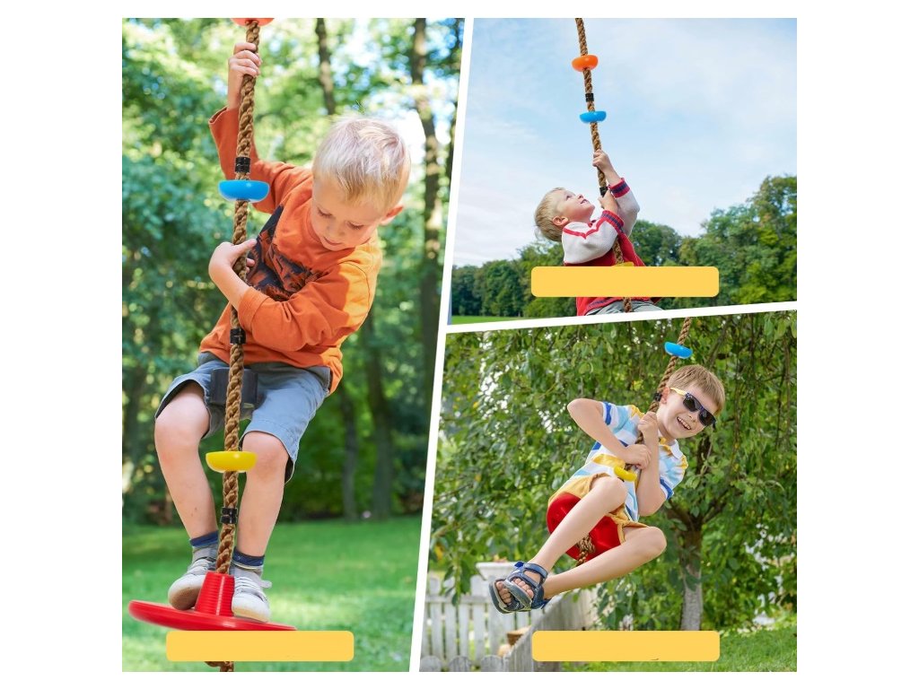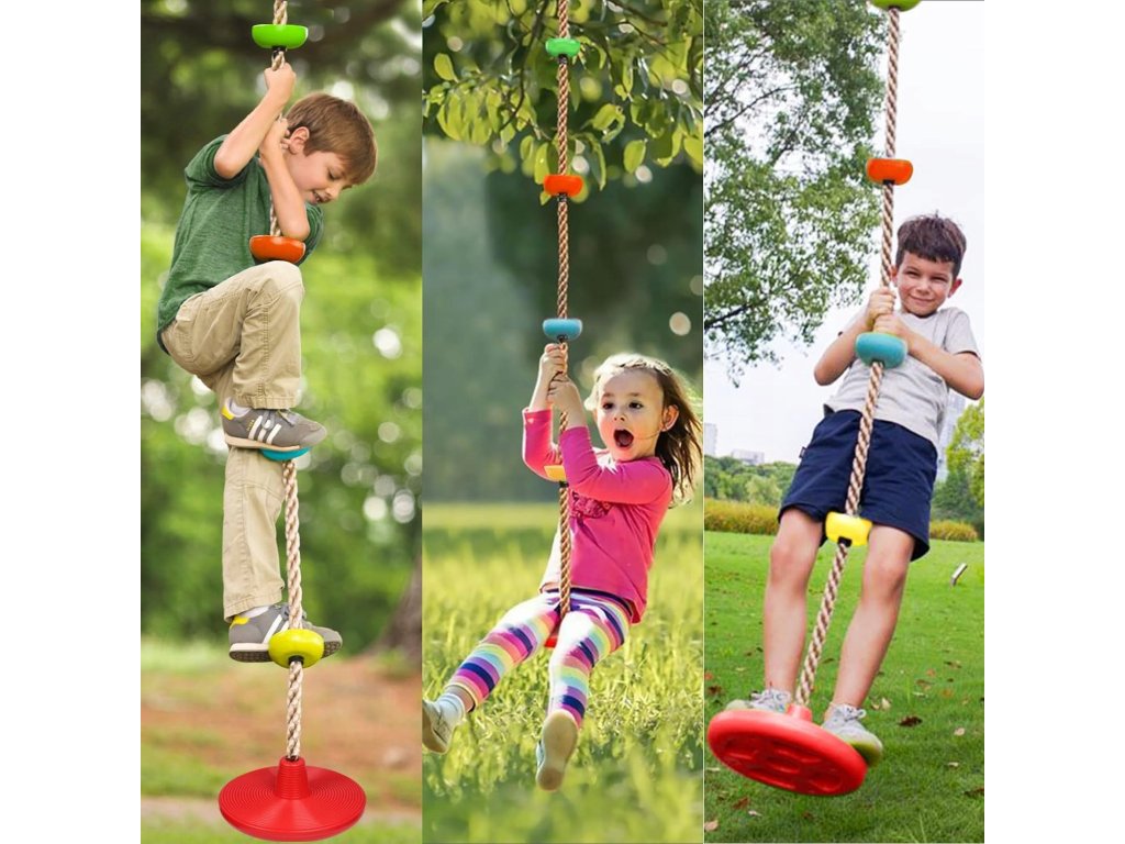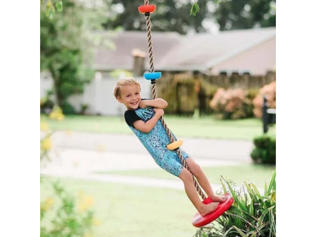 A mászókötéllel ellátott koronghinta nagyszerű eszköz a motoros készségek, a koordináció, az erő és az állóképesség fejlesztésére. A gyermek játékos módon erősítheti az egész testét.