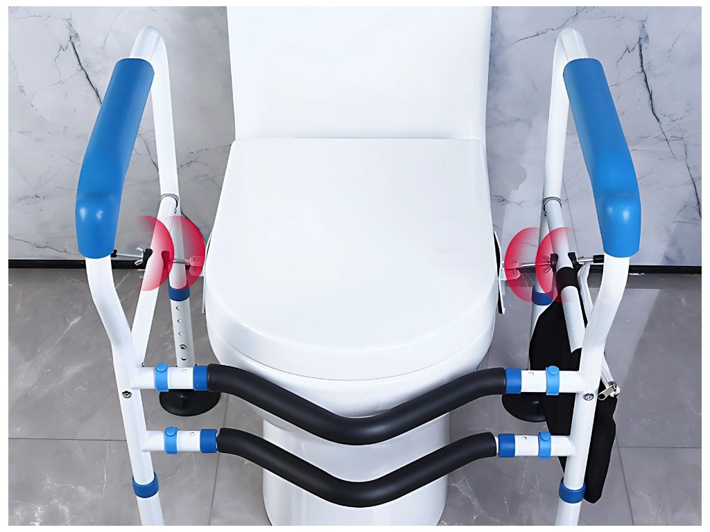 A kiváló minőségű biztonsági WC-tartó megerősített fémszerkezettel rendelkezik, amely ellenáll a sérüléseknek és hosszú távú használatot biztosít. Stabilizáló tapadókorongok egészítik ki, amelyek megakadályozzák a padlón való nem kívánt mozgást.