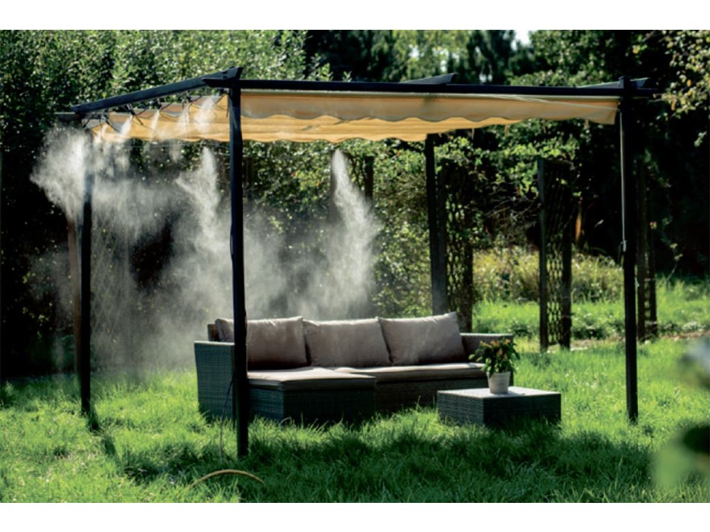 Élvezze a nyarat, a grillezést, a teraszon ülést ezzel a nagyszerű vízipára kapuval. Ideális a teraszon töltött alkalmi pillanatokhoz, a barátokkal való időtöltéshez, háziállatoknak vagy növények öntözéséhez. Ez a nagyszerű rendszer nagyon finom ködöt bocsát ki, amely jelentősen hűti a kerti teraszokat, verandákat, teraszokat, medencéket, játszótereket vagy bármely más kültéri teret.