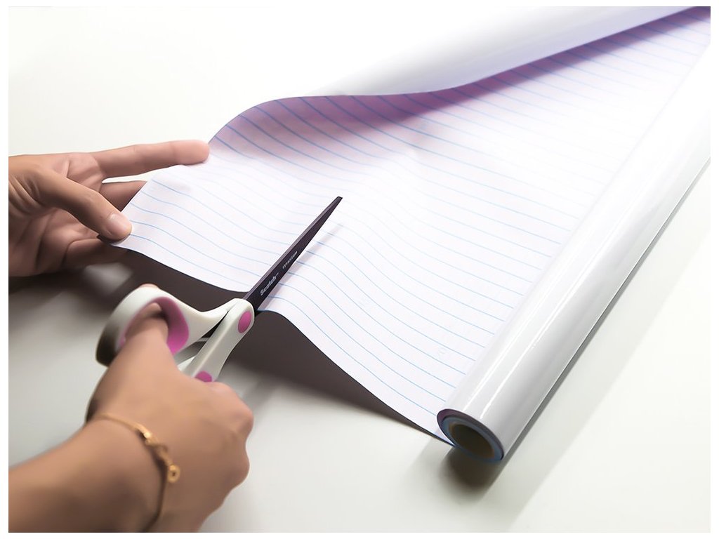 A tábla ideális mérete 45x200 cm. Nagy előnye, hogy nem foglal sok helyet. Bárhová felragaszthatja. Több táblát is összekapcsolhat egy megatábla vagy egy fal létrehozásához.