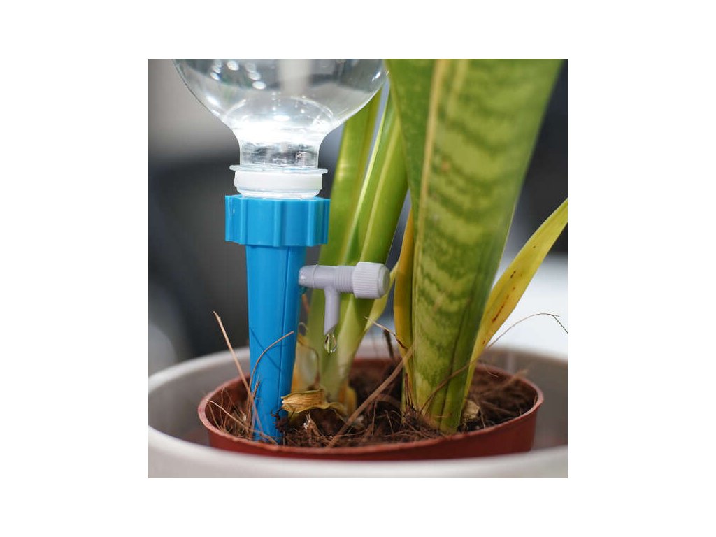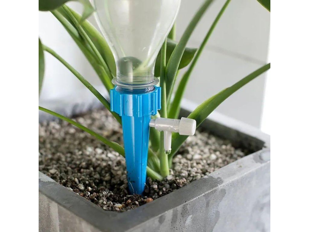 Felejtse el az unalmas és nehéz öntözést. Helyezze be a mellékelt szelepet, hogy szabályozza az áramlást az öntöző tipbe. Töltse fel a PET-palackot vízzel, csavarja rá az öntöző tippet és szúrja bele a növény melletti talajba. Készítsen egy kis lyukat a palack tetején a levegő beszívásához. Ezután állítsa be a csepegtetési sebességet a forgószelep segítségével.