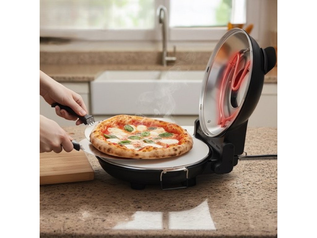 Az elektromos pizzasütő kiváló minőségű kerámia kővel van felszerelve, amely biztosítja az egyenletes hőeloszlást. Így élvezheti a hagyományos sütőben sült ételek autentikus ízét és aromáját.