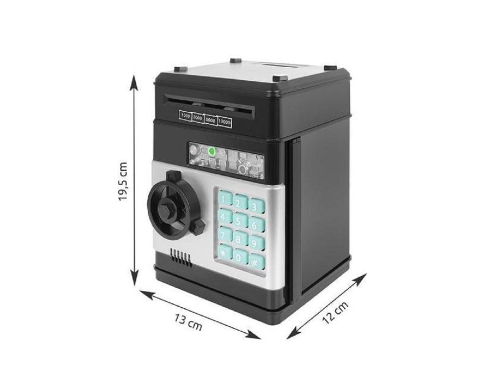 Ez a modern elektronikus bankomata minden bedobott bankjegyre vagy érmére reagál, és emlékezteti Önt, ha a széf ajtaja nyitva van. Kompakt méreteinek köszönhetően könnyen hordozható és stabil, mégis elég erős ahhoz, hogy megvédje minden megtakarítását.