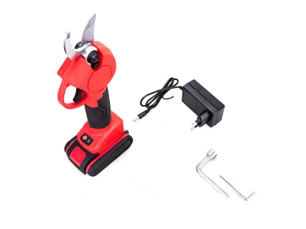 Az akkumulátoros metszőolló egy készlet része, amelyhez tartozik egy töltő, akkumulátor és a pengék felszereléséhez szükséges szerszámok is. Mindezek a praktikus hordtáskában találják meg a helyüket, ami sokkal kényelmesebbé teszi a hordozást.