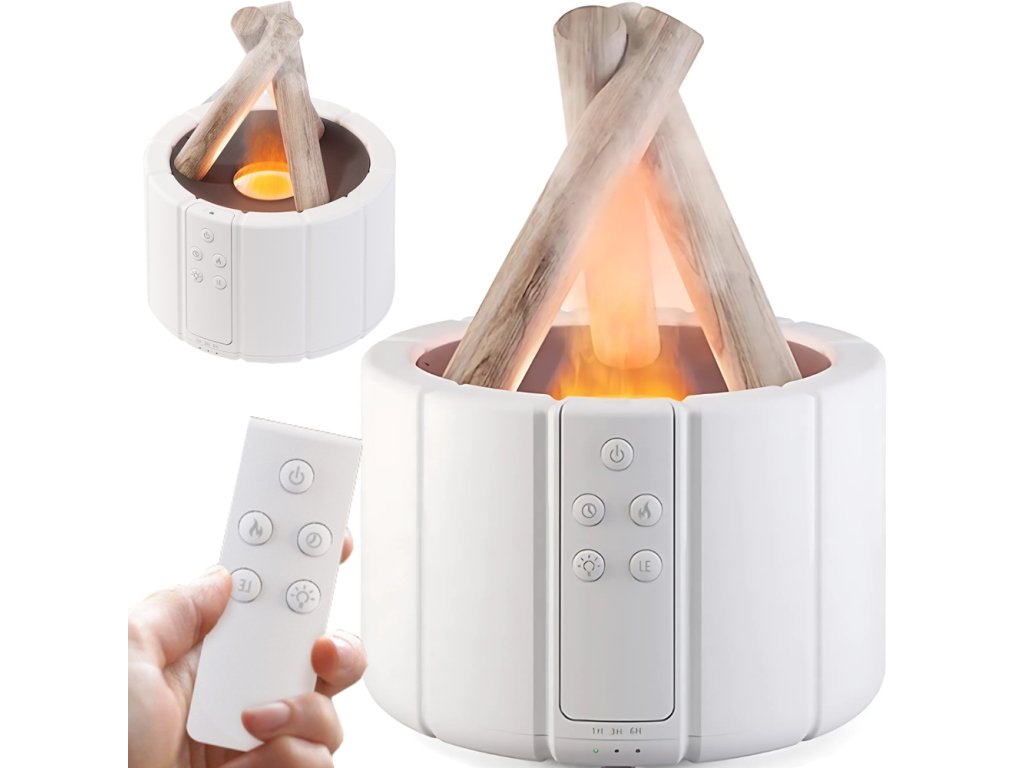 Fedezze fel a vizuális hatás erejét. Ez a párásító nemcsak a szaglási érzékeit elégíti ki, hanem a szemét is gyönyörködteti. Esztétikus kialakítása, amely egy miniatűr tábortűzre emlékeztet, otthonos hangulatot kölcsönöz a modern belső tereknek, és kiegészíti azokat.